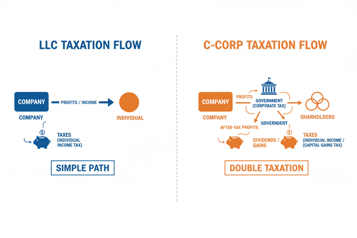 C-Corp = 正规、能融资、能上市,但税务复杂